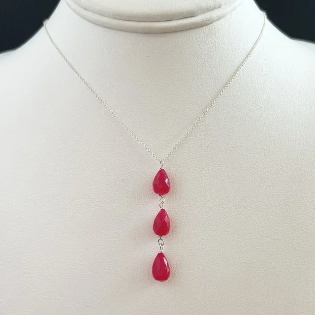 Our pendant necklace design is handcrafted with linked pink chalcedony on a sterling silver chain.